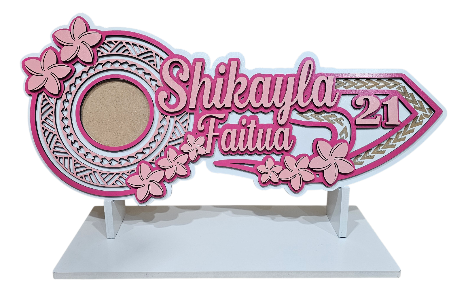 This amazing 21st key comes with a plain stand. You can have designs added by selecting them in the "stand options" section.
